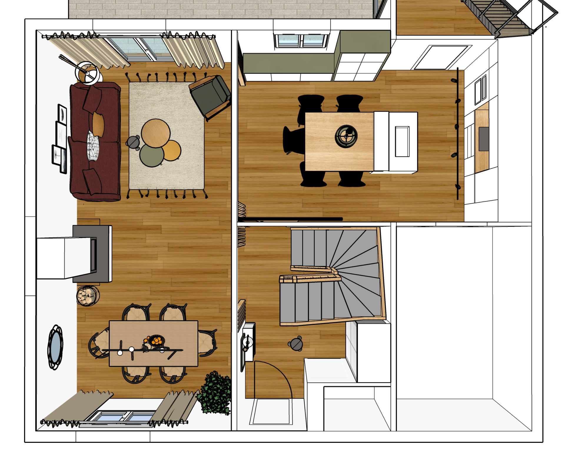 A noter bien sûr que les visuels produits servent aussi à communiquer avec vos prestataires potentiels (menuisier, électricien, maitre d'oeuvre...) : plans techniques détaillés des travaux attendus et/ou aménagements spécifiques envisagés.